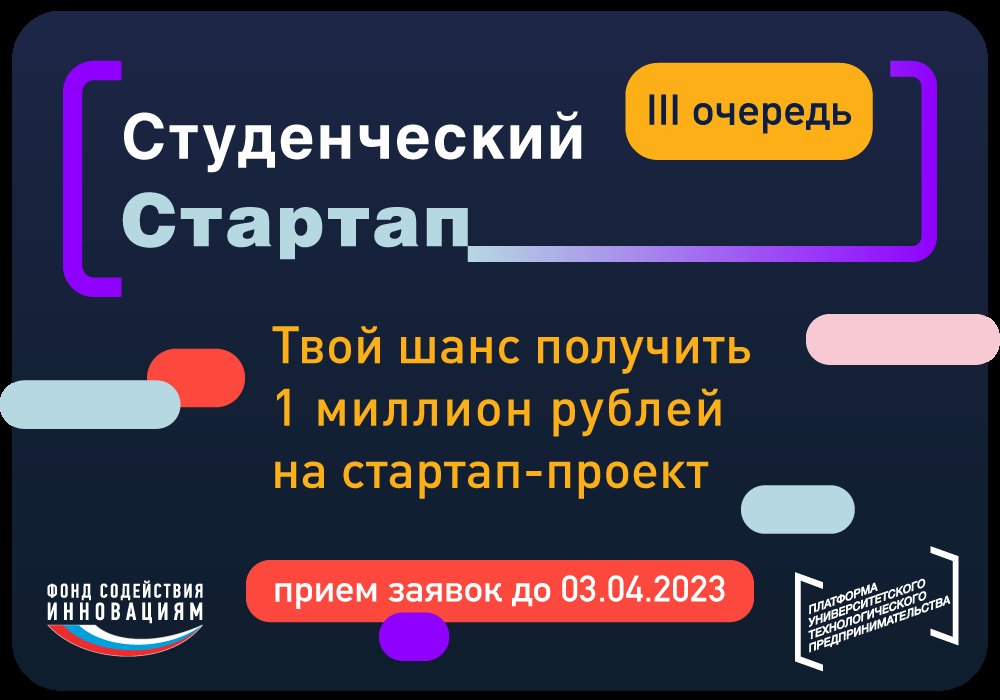 Конкурс «Студенческий стартап» (в рамках федерального проекта «Платформа университетского технологического предпринимательства»)