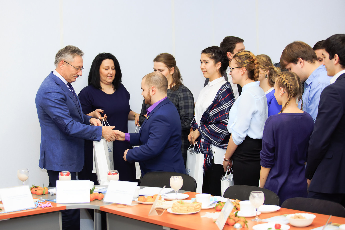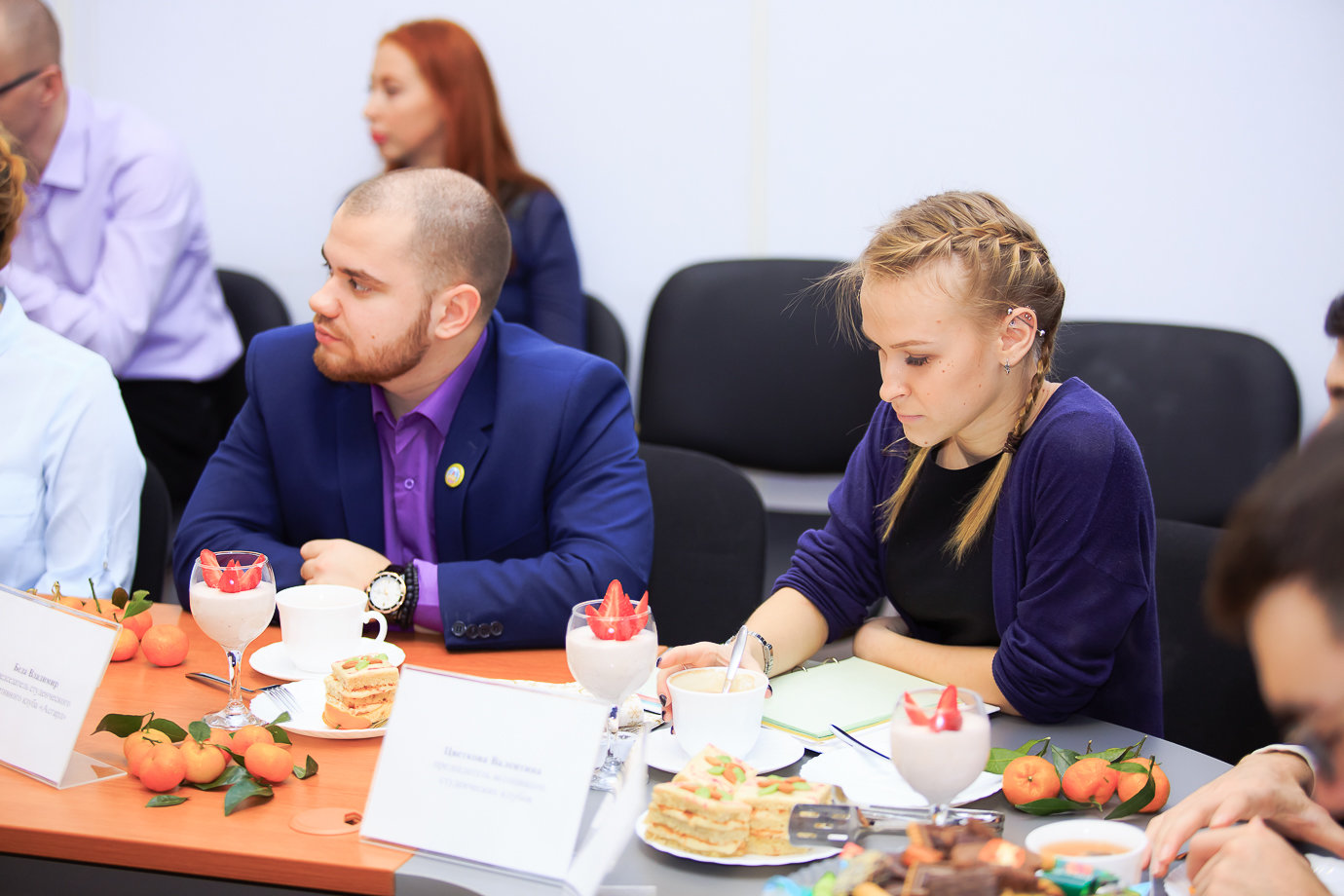 Перед началом разговора Ярослав Мищенко, председатель студенческого совета университета, представил Сергею Михайловичу всех, кто пришел на встречу. Это были председатели советов институтов и общежитий, ассоциаций и клубов, их заместители — те, кто успешно совмещает обучение профессии с внеучебной работой.