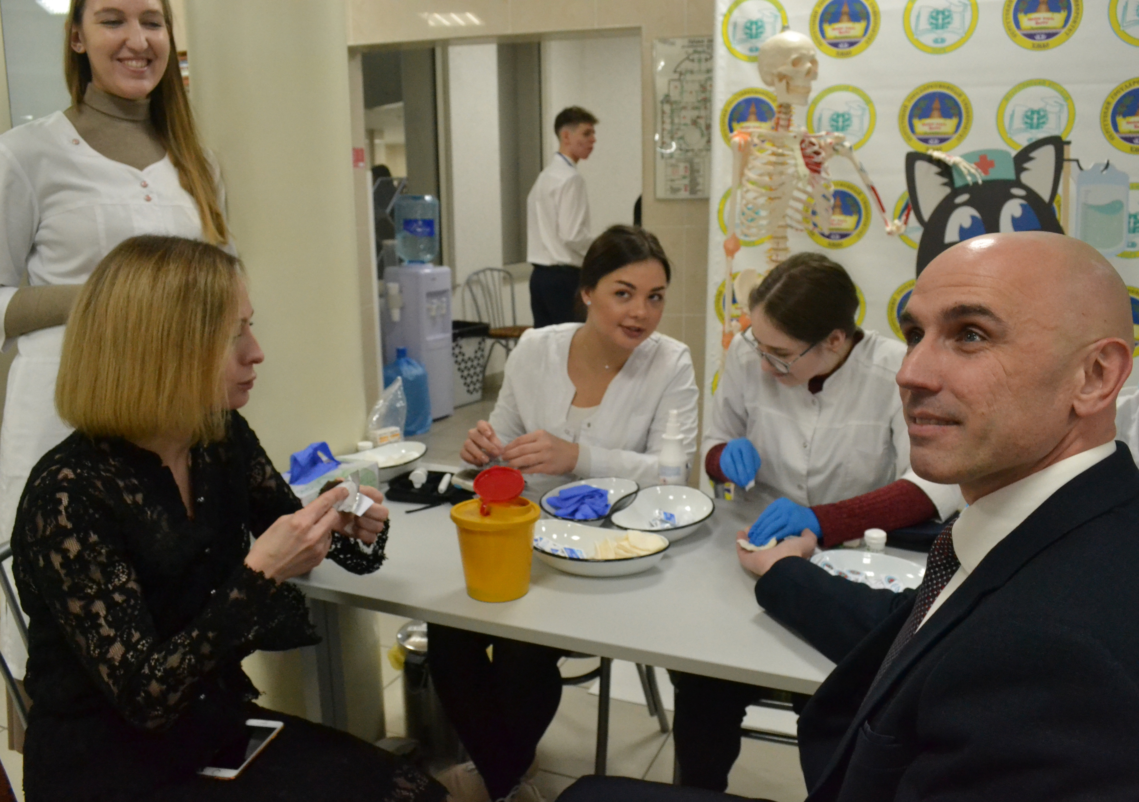 Среднее медицинское бинго знакомило с Медицинским колледжем, где ребята могли узнать имена всех учебных манекенов, порадоваться, что артериальное давление в норме, измерить рост и понять, что вырос за последний год, измерить уровень глюкозы в крови и получить шоколадку.