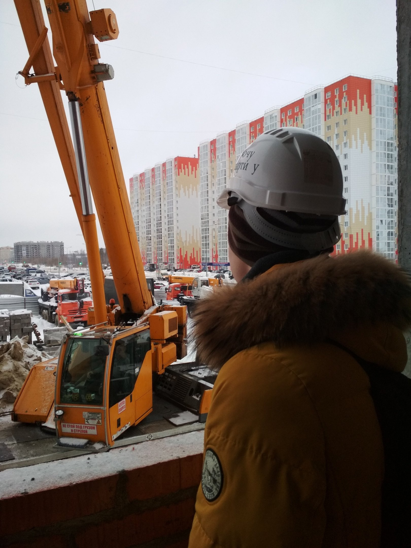 Ребята остались довольны экскурсией, эмоционально обсуждали рабочий процесс по кладке кирпича, приготовление бетонных смесей, технические характеристики экскаваторной техники.