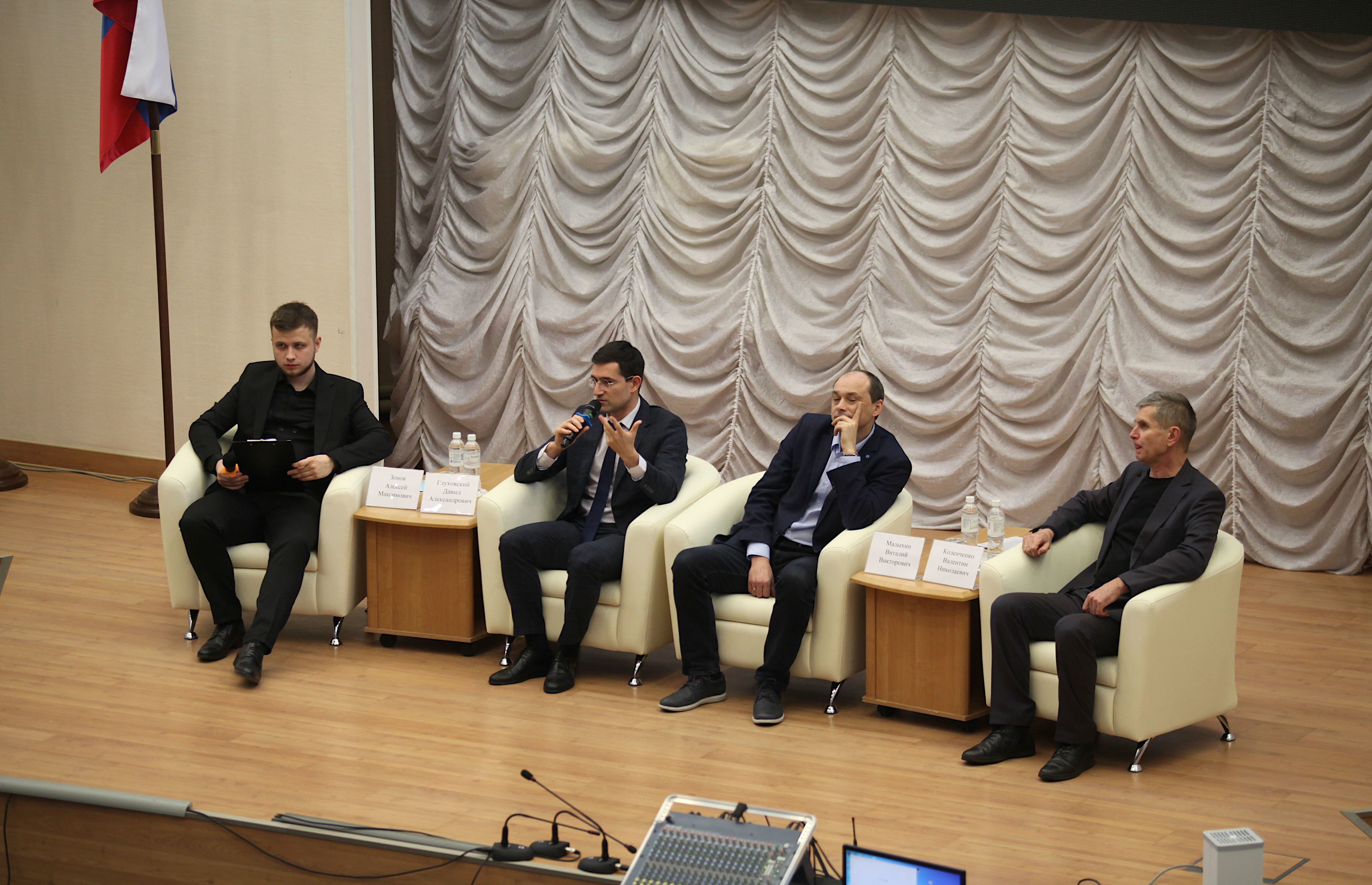 В преддверии Дня защитника Отечества в Сургутском государственном университете состоялось традиционное мероприятие «Мужской разговор». Со студентами побеседовать о насущном пришли Давыд Александрович Глуховский, председатель Ассоциации выпускников СурГУ, и начальник службы по связям с общественностью и СМИ ООО «Газпром трансгаз Сургут»; Виталий Викторович Малыхин, генеральный директор мультимедийного исторического парка «Россия – моя история. Югра» и Валентин Николаевич Коленченко, председатель правления МОО «Союз Отцов Сургута».