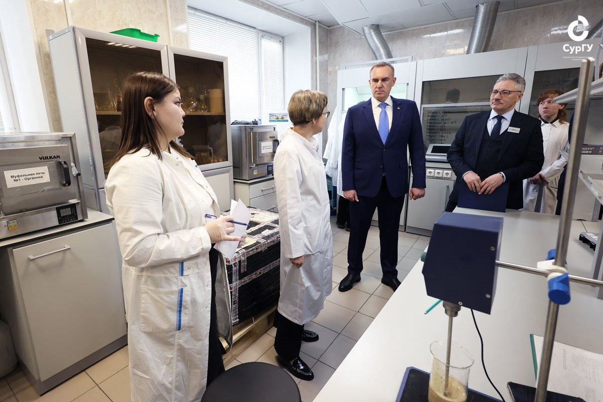 Накануне Дня российской науки Губернатор Югры Руслан Кухарук, заместитель Губернатора Югры Елена Майер, заместитель директора – начальник управления непрерывного профессионального образования и науки окружного департамента образования и науки Александр Гомзяк, заместитель главы города Сургута Ирина Пустовая посетили лаборатории и инжиниринговые центры Сургутского госуниверситета, а также пообщались с научными сотрудниками, которые рассказали об уникальных разработках и перспективных планах развития науки и региона.