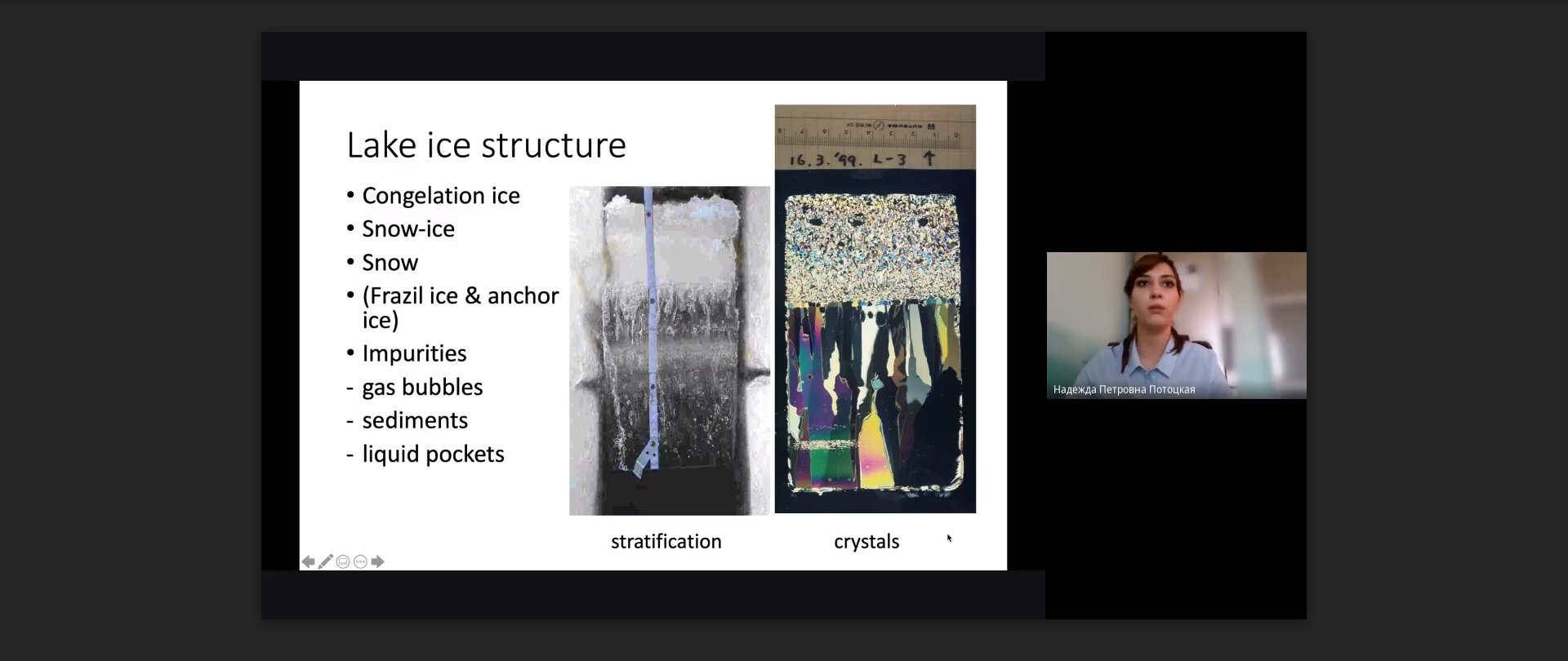 Профессор Матти Леппяранта из Университета Хельсинки (Финляндия) выступил с докладом «Влияние ледового покрова на экосистемы озер». Иностранный спикер детально описал структуру льда, отметив, что именно солнечная радиация – энергетическая освещенность, создаваемая электромагнитным излучением, поступающим от солнца, атмосферы и земной поверхности, приводит к весеннему таянию льда. Этот процесс, по словам профессора, становится настоящей катастрофой для водных экосистем.